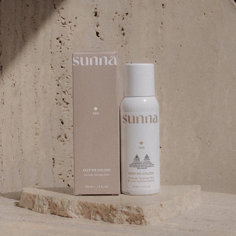 Keep Me Golden is our signature blend of SunnaTan ingredients now in a convenient spray can you can take on the go! Keep Me Golden is perfect for extending the life of your existing airbrush tan, or alone as a do-it yourself gradual glow. The self-tanning mist aerosol spray delivers an ultra fine mist for an easy to use application. Formulated with natural ingredients, the delicate hint of shimmer gives an immediate glow and allows for perfectly even application.